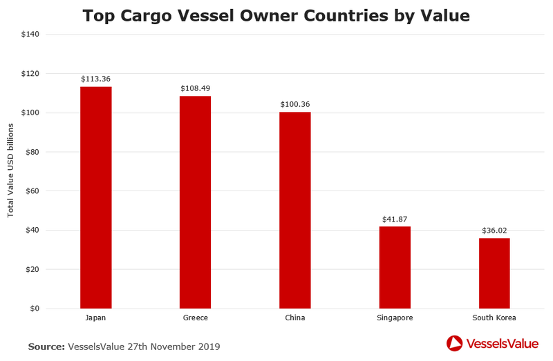 Top cargo vessel owner countries by value as of 27th November 2019. Image: VesselsValue