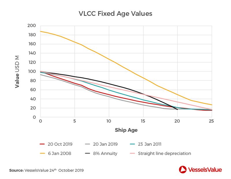 VLCC fixed age values across a number of periods. Image: VesselsValue