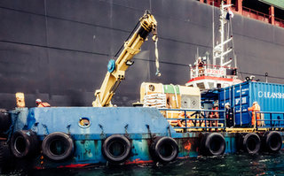 Hull cleaning and bunkering during a port call.
